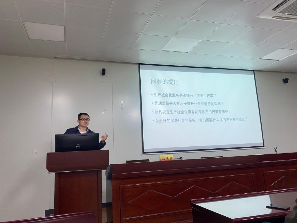 师生作题为《社会化服务、劳动监督与中国农业生产率》的线下学术报告。报告由尹敬东副院长主持。