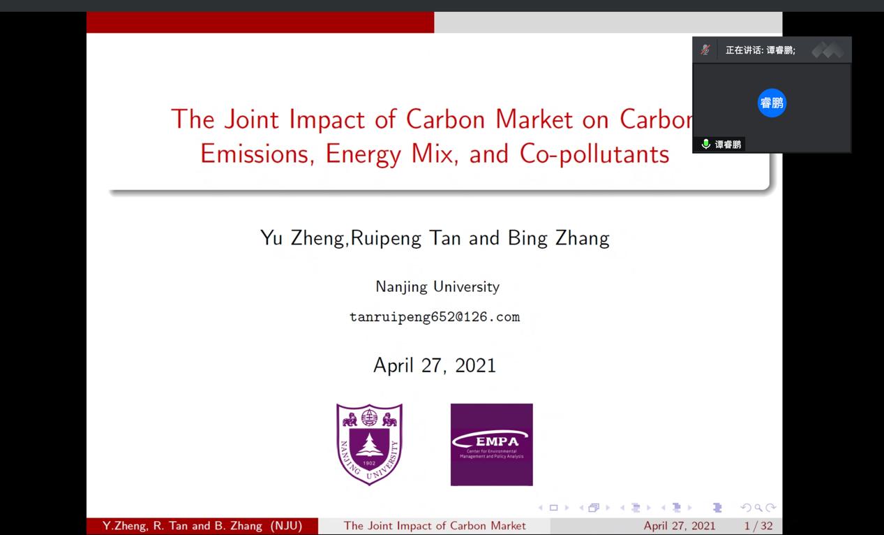 师生带来《The Joint Impact of Carbon Market on Carbon Emissions, Energy Mix, and Co-pollutants》的专题学术讲座。